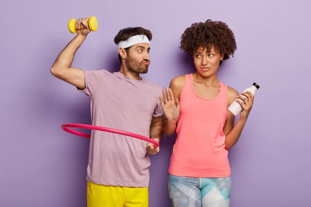 Befülle innere Zip‑Beutel, sichere mit Tape, stecke alles in einen robusten Seesack. Wiege nach, notiere das Gewicht. Ein Leser trainiert seit zwei Jahren damit – null Risse, maximaler Spaß.